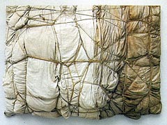 Zusätzliche Ausrüstung (Bild: Christo, Verpackung, 1961) Neben der normalen Segelausrüstung aller Crewmitglieder und der auf dem Boot vorhandenen Ausstattung, haben wir noch eine ganze Menge zusätzlicher technischer Geräte dabei. Sie dienen in erster Linie zur Kommunikation und damit auch der Sicherheit, zur Dokumentation der ganzen Atlantik-Überquerung und zur Unterhaltung der Crew. |