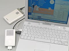 Unterhaltung (Bild: Apple iBook, iPod und ext. HD als "DVD-Server") |